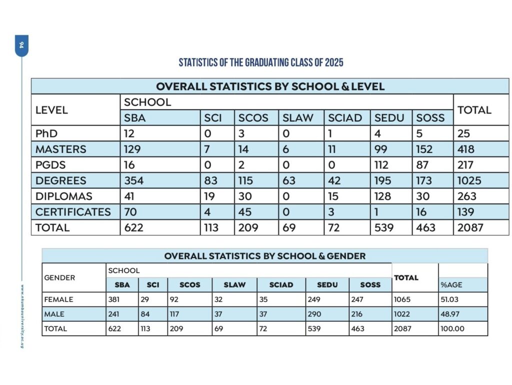 A total of 2,087 students graduated from Nkumba University on Saturday, 25th October 2025, during the institution’s 27th Graduation Ceremony held at its main campus in Entebbe.